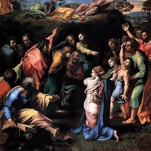 Unlike traditional depictions that isolate the Transfiguration narrative, Raphael fused two scenes into one striking composition. The result is a theological meditation on how glory and suffering coexist, not just in Scripture, but in the human experience.